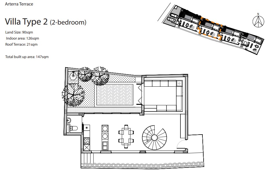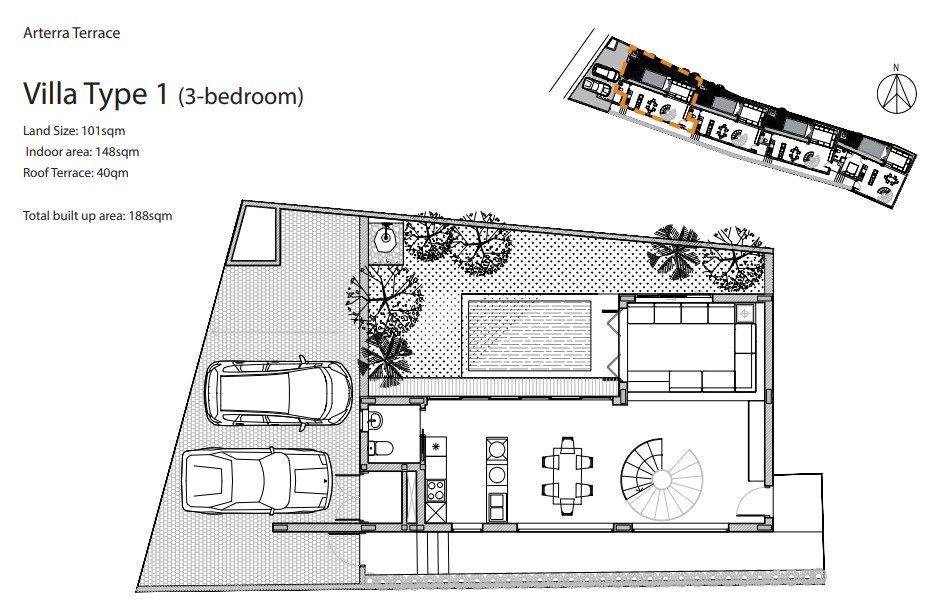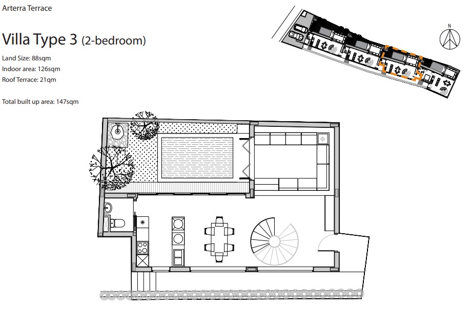 slope, hence the name “Terrace”. This site was carefully chosen for its dominantly northsouth orientation to ensure maximum comfort and best ventilation in the tropical weather. Each villa is designed with a private courtyard and a pool.
